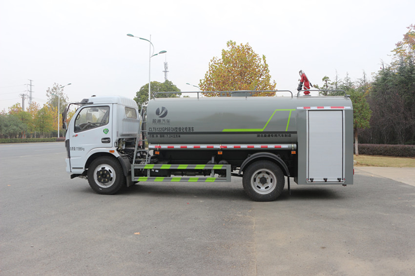 東風(fēng)灑水車采用東風(fēng)新款專用底盤,白色排半可前翻駕駛室,玉柴185馬力國五發(fā)動(dòng)機(jī),陜齒八檔變速箱,軸距3800mm,9噸后橋,825R20原廠鋼絲胎,原廠abs,帶方向助力,離合助力器,氣剎制動(dòng)。