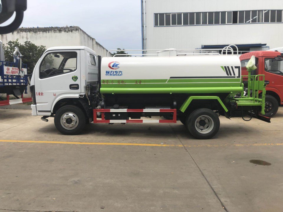 東風(fēng)5噸灑水車(chē)采用東風(fēng)多利卡底盤(pán),白色可前翻駕駛室,朝柴102馬力國(guó)五發(fā)動(dòng)機(jī),5檔變速箱,軸距3308mm,1.8噸前橋,3.5噸后橋,7.00R16原廠鋼絲胎,原廠abs,帶方向助力,離合助力器,氣剎制動(dòng)。