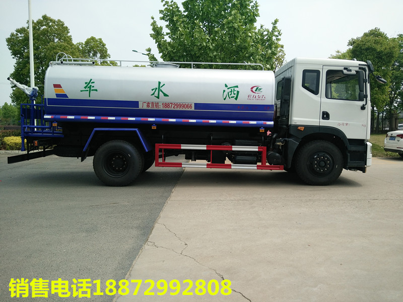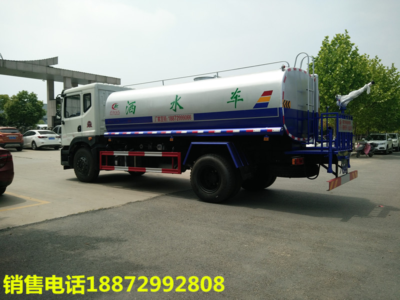 隨底盤選裝駕駛室;品名:;密度:1000千克/立方米;有效容積:11.45立方米;外形尺寸長(mm)/軸距(mm)/后懸(mm)/罐體尺寸(×長軸×短軸)(mm)對應關系吸程≧7米,灑水寬度≧14-16米,射程25-30米,引水時間<5min,流量60m3/h。前沖()、后灑、帶側噴(花灑)、帶后工作平臺、平臺上安裝綠化灑水高炮(炮噴射形狀可調節:直沖、大雨、中雨、毛毛雨、霧狀、可連續調節,360°旋轉),配消防接口,自流閥,濾網,帶自吸自排功能配備大功率專用灑水泵,泵可自吸自排,安裝過濾網,帶消防接口,可通過消防栓進水,帶自流閥,隨車選裝20米綠化卷盤,可噴灑農藥,罐體金屬漆。罐體有橢圓和方圓罐兩種,可根據用戶的要求定做。