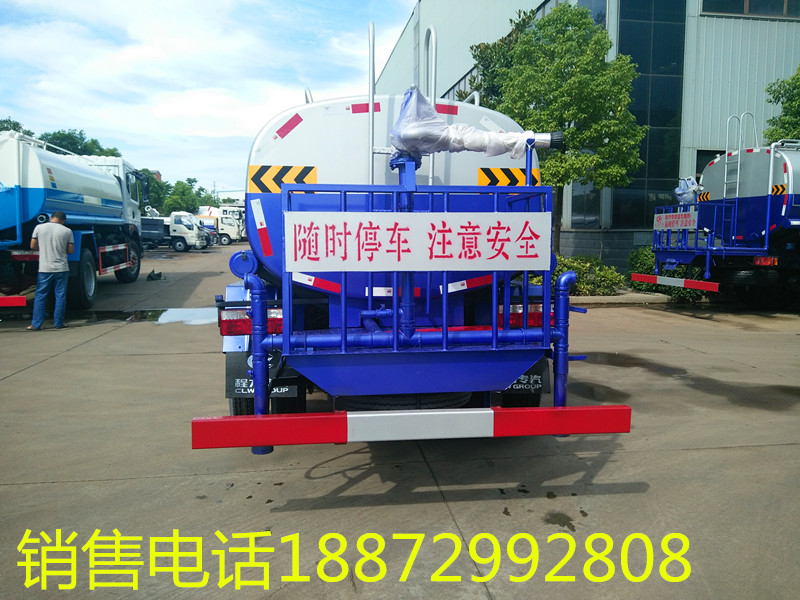 5噸灑水車,隨底盤選裝駕駛室前面罩以及前霧燈。2、灑水車罐體有效容積:4.06立方米,罐體外形尺寸(長×長軸×短軸關(guān)系為(mm): 3400×1600×1100, 吸程≧7米,灑水寬度≧14-16米,射程≧25-30米,引水時(shí)間<5min,流量60m3/h。前沖(噴)、后灑、帶側(cè)噴(花灑)、帶后工作平臺、平臺上安裝綠化灑水高炮(炮噴射形狀可調(diào)節(jié):直沖、大雨、中雨、毛毛雨、霧狀、可連續(xù)調(diào)節(jié),360°旋轉(zhuǎn)),配消防接口,自流閥,濾網(wǎng),帶自吸自排功能。配備大功率專用灑水泵,泵可自吸自排,安裝過濾網(wǎng),帶消防接口,可通過消防栓進(jìn)水,帶自流閥,隨車選裝20米綠化卷盤,可噴灑農(nóng)藥,罐體金屬漆。罐體有橢圓和方圓罐兩種,可根據(jù)用戶的要求定做 發(fā)動機(jī)可選,云內(nèi),朝柴 ,錫柴,全柴