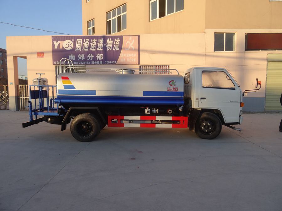 改裝配置:罐體采用4mm厚武鋼專用容積板制作,實(shí)際容積5立方,罐內(nèi)隔板具有防波作用,以減低汽車行駛時(shí)罐體液體的沖擊。泵 進(jìn)泵出,消防栓接口,前沖、后灑、側(cè)噴、后工作平臺(tái)帶綠化水炮,垂直吸程≧7米,灑水寬度≧14-16米,射程≧20-25米,引水時(shí) 間<5min,流量90m3/h。自流閥、濾網(wǎng)、帶自吸自排功能。兩根等長輸水管,金屬漆,其余標(biāo)配。可加裝藥盤、氣動(dòng)控制閥、噴藥設(shè)備、非車帶泵動(dòng)力等。