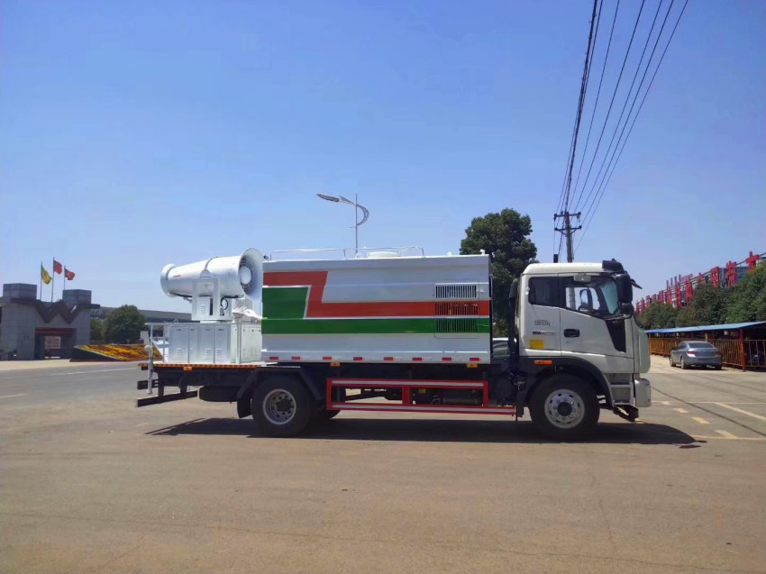 當匹配大型霧炮機用于除霾降塵時,采用方形水罐,水罐與駕駛室之間有一個大功率副發動機倉,整車一體化設計,外形更美觀。