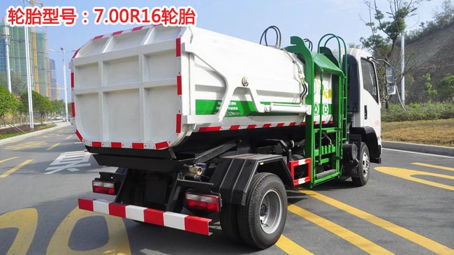 垃圾車(chē)標(biāo)準(zhǔn)配置介紹:該車(chē)最主要的優(yōu)點(diǎn)就是可一車(chē)配多桶,收集方式簡(jiǎn)便、高效、環(huán)保性好(不產(chǎn)生二次污染),舉升油缸(2支)系國(guó)內(nèi)知名液壓件廠家生產(chǎn)的雙作用油缸;箱體為密封式結(jié)構(gòu),在箱體前部設(shè)有進(jìn)料箱蓋,側(cè)面設(shè)有自裝料裝置,箱體后部設(shè)有卸料門(mén)。垃圾桶自裝卸裝置(掛桶提升機(jī)構(gòu))設(shè)在箱體的前部側(cè)面,由支架、油缸、鏈條結(jié)構(gòu)、吊鉤等組成。此裝置可將外部垃圾桶內(nèi)的垃圾提升裝入箱體內(nèi)。