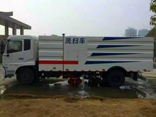天錦洗掃車具有路面清洗、路面清掃路緣和路緣石立面洗刷、低壓沖洗、噴霧除塵等多功能。需要進(jìn)行路面清掃或路面保潔作業(yè)時(shí),可選擇掃路模式。需要噴霧除塵時(shí),可開(kāi)啟噴霧裝置,進(jìn)行噴霧除塵作業(yè)。可以像灑水車一樣對(duì)路面進(jìn)行低壓沖洗作業(yè)