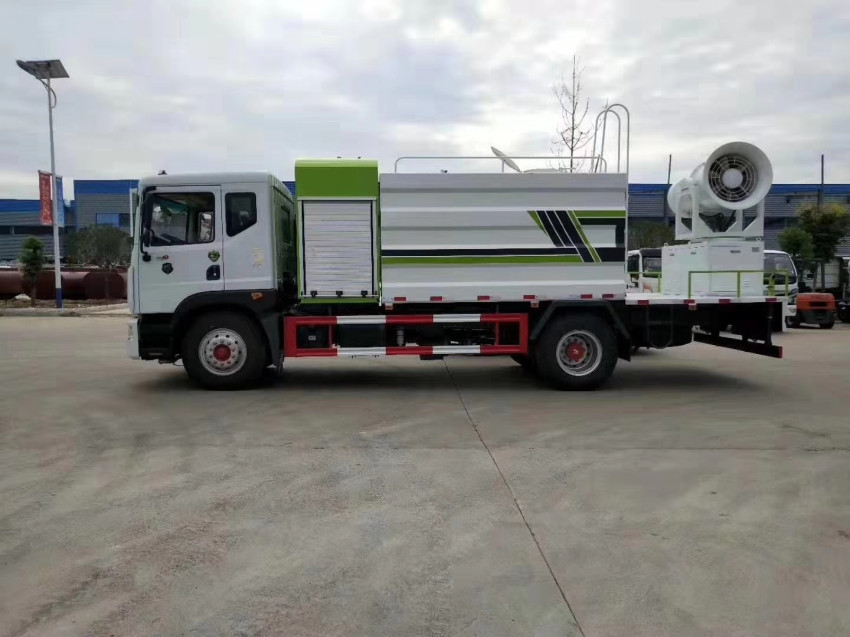 抑塵車專用功能配置:帶前沖、后灑、左右側噴、后工作平臺、尾部帶綠化高炮,綠化炮可以調節直沖、大雨、中雨、毛毛雨、霧狀。灑水炮直沖射程30-35米,配備專用灑水泵實現自吸自排,帶消防接口、自流口、兩根輸水管 3.隨車附帶的文件:整車合格證,底盤合格證,上戶發票,整車說明書,保修手冊,免征圖冊等。45,售后服務:底盤部分全國服務站聯保,上裝產品質量一律實行國家三包,整車三包一年,期間出現任何質量問題,底盤部分有當地東風公司負責保修,上裝部分有廠家維修壹年。發動機玉柴200匹馬力,6當變速箱,1000R20鋼絲胎,罐體有效容積10-12立方 配80米河南萬豐霧泡,120千瓦柴油發電機,霧泡可以遙控操作 |