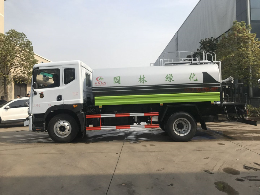 灑水車吸程≧7米,灑水寬度≧14-16米,射程≧25-40米,引水時(shí)間<5min,流量60m3/h。前沖(噴)、后灑、帶側(cè)噴(花灑)、帶后工作平臺(tái)、平臺(tái)上安裝綠化灑水高炮(炮噴射形狀可調(diào)節(jié):直沖、大雨、中雨、毛毛雨、霧狀、可連續(xù)調(diào)節(jié),360°旋轉(zhuǎn)),配消防接口,自流閥,濾網(wǎng),帶自吸自排功能。配備大功率專用灑水泵,泵可自吸自排,安裝過濾網(wǎng),帶消防接口,可通過消防栓進(jìn)水,帶自流閥,此車尾部加裝大功率農(nóng)藥噴灑炮,