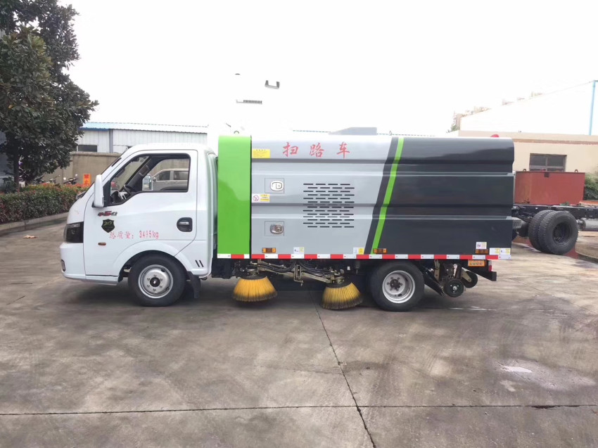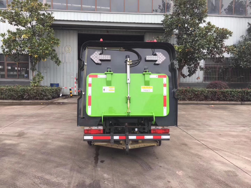 小型掃路車裝標配:帶4個掃盤、江鈴發動機、三洋馬達、施耐德控制開關、海普瑞斯電磁閥組、無級變速自動離合器、免維護離心式自動風機、不銹鋼垃圾箱、尾部LED箭頭指示燈、手動泵應急系統、中聯北極星電子水泵,垃圾舉升自卸功能。