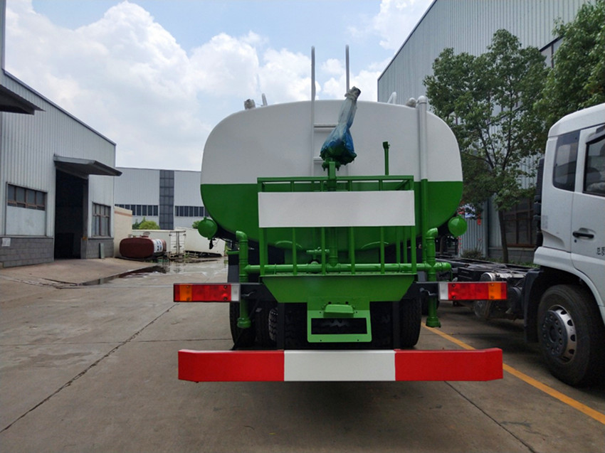 東風新款153  20噸灑水車罐體采用機器壓板一次性成型技術,采用先進旋邊機,罐體包罐機工藝保證了罐體制作的精度和美觀。全國獨有烤漆工藝,防腐除銹,多層底漆、面漆噴涂。 功能齊全,灌溉、噴灑、道路養護,噴霧降塵、高炮噴射等,采用優質水泵,合理設計水路管道,氣控取力器,作業能力強;加大罐體設計,可以裝作18方水,提高了車輛的使用效率。