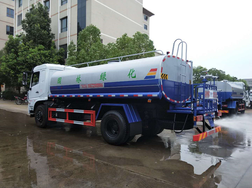 配備大功率專用灑水泵,泵可自吸自排,安裝過濾網,帶消防接口,可通過消防栓進水,帶自流閥,隨車選裝20米綠化卷盤,可噴灑農藥,罐體金屬漆。罐體有橢圓和方圓罐兩種,可根據用戶的要求定做