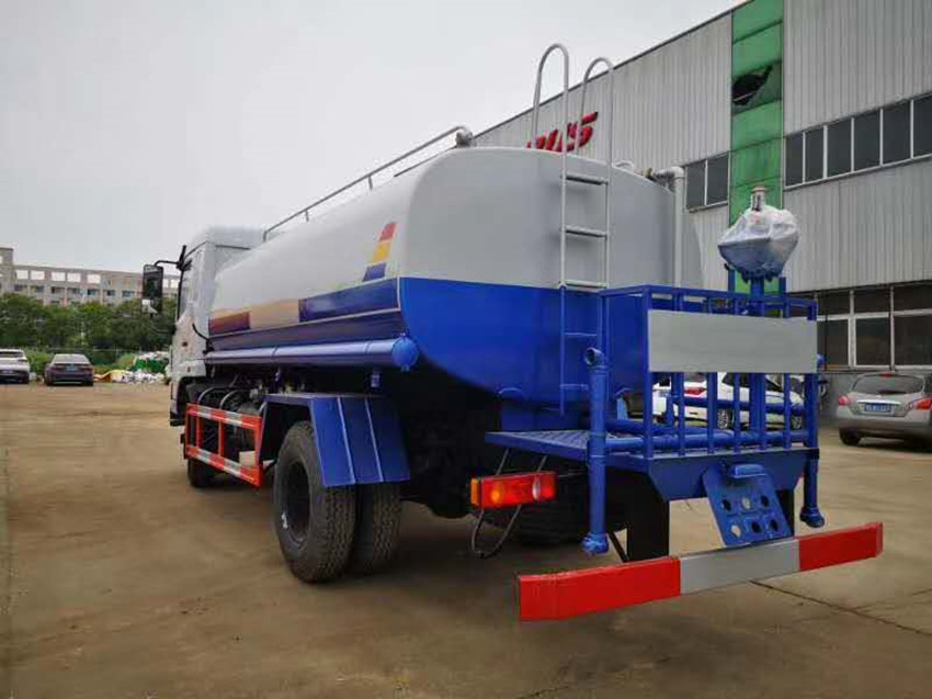 12噸灑水車罐體為橢圓形或方形,采用武鋼優質碳鋼板制成,罐體倉內1.5米一道隔板,具有防波防蕩作用,還可按用戶要求進行專業的防腐防銹處理,罐體外可用發泡或巖棉加裝保溫層起保溫功能。可選裝藥盤,藥泵、高壓噴藥設備、非車帶泵動力等.、罐內防腐防銹、多方位進出水接頭、氣動閥、警燈等先進設施,以滿足不同用戶需求。