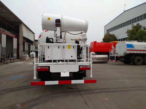 第四:動力裝置是有發動機和功能電氣控制柜組成,作用是為壓力機和風機及提供標準功率電能;電氣控制柜作用是控制整套霧炮車設備的噴霧工作狀態,可以實現遙控功能和無人操作控制,以適應不同場合的需要。