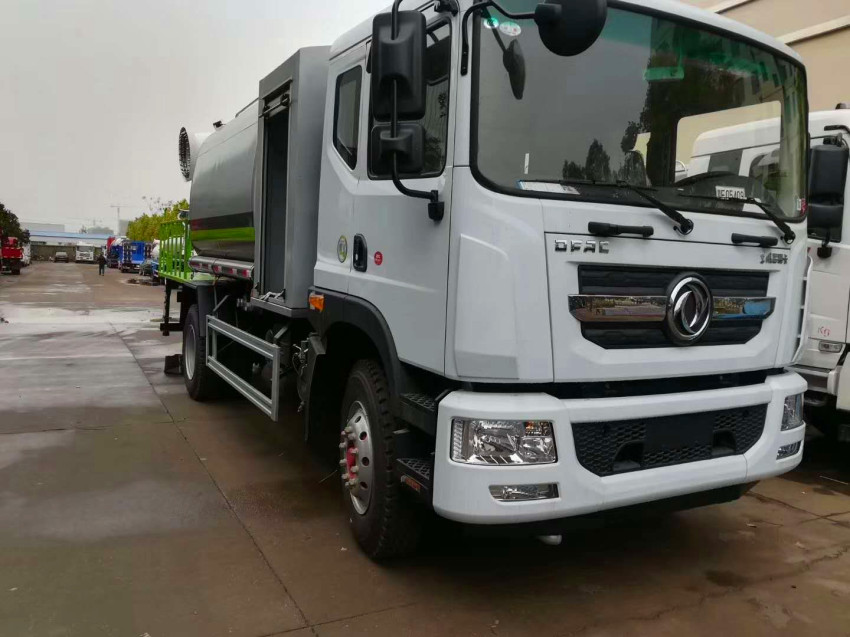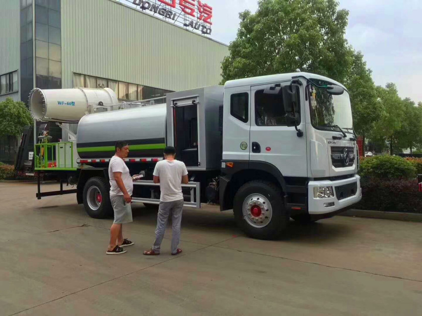 上裝配置:罐體容積為 15-18 立方多功能抑塵灑水車,選配風送式霧炮機組射程50米、60米、80米、100米、120米,罐體鋼板為4mm碳鋼Q235材質,罐內隔板具有防波作用,以減輕汽車行駛時罐體液體沖擊,罐體及整車外形尺寸按照公告。帶大功率專用灑水泵,泵可自吸自排,整車前沖、后灑、側噴、帶65消防接口,后平臺配CLW-50、CLW-60、CLW-80、CLW-100、CLW-120型風送式霧炮機組;罐體前封頭配大功率柴油發電機組;遠程遙控系統控制;霧炮機自動旋轉角度0-360°。后平臺帶綠化灑水炮,灑水炮可全方位旋轉,可連續調成直沖狀、大雨、小雨、毛毛雨;前封頭帶水位計,后平臺主管路帶1寸澆花接口,后爬梯。帶兩根輸水管及陰陽端。罐體顏色:銀/灰/綠,罐體兩側噴“多功能抑塵車”字樣,貼反光標示。