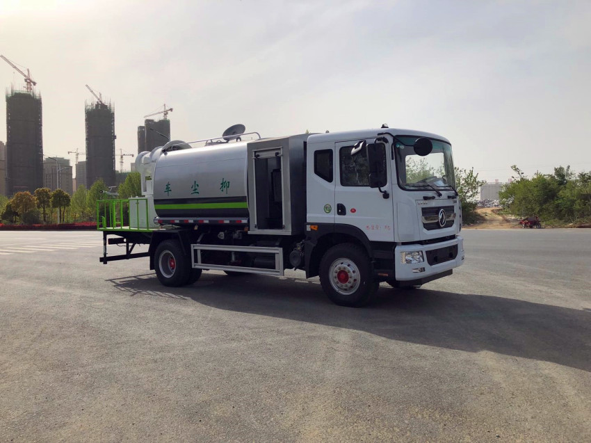 上裝配置:罐體容積為 10-12 立方多功能抑塵灑水車,選配風送式霧炮機組射程50米、60米、80米,罐體鋼板為4mm碳鋼Q235材質,罐內隔板具有防波作用,以減輕汽車行駛時罐體液體沖擊,罐體及整車外形尺寸按照公告。帶大功率專用灑水泵,泵可自吸自排,整車前沖、后灑、側噴、帶65消防接口,后平臺配CLW-50、CLW-60、CLW-80型風送式霧炮機組;罐體前封頭配大功率柴油發電機組;遠程遙控系統控制;霧炮機自動旋轉角度0-360°。后平臺帶綠化灑水炮,灑水炮可全方位旋轉,可連續調成直沖狀、大雨、小雨、毛毛雨;前封頭帶水位計,后平臺主管路帶1寸澆花接口,后爬梯。帶兩根輸水管及陰陽端。罐體顏色:銀/灰/綠,罐體兩側噴“多功能抑塵車”字樣,貼反光標示。