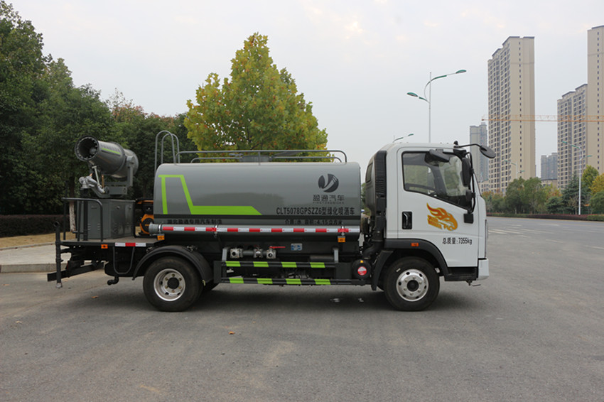 藍牌東風多利卡抑塵灑水車罐體容積為4-5m3,采用專用灑水泵可實現自吸自排。 前沖,后灑,側噴,后工作平臺帶綠化灑水炮,炮噴射形狀可調節:直沖,大雨,中雨,毛毛雨,霧狀,可連續調節,360度旋轉,配消防接口,自流閥,濾網,音樂喇叭,視水管,配兩根輸水管。加裝30型柴油噴霧機。