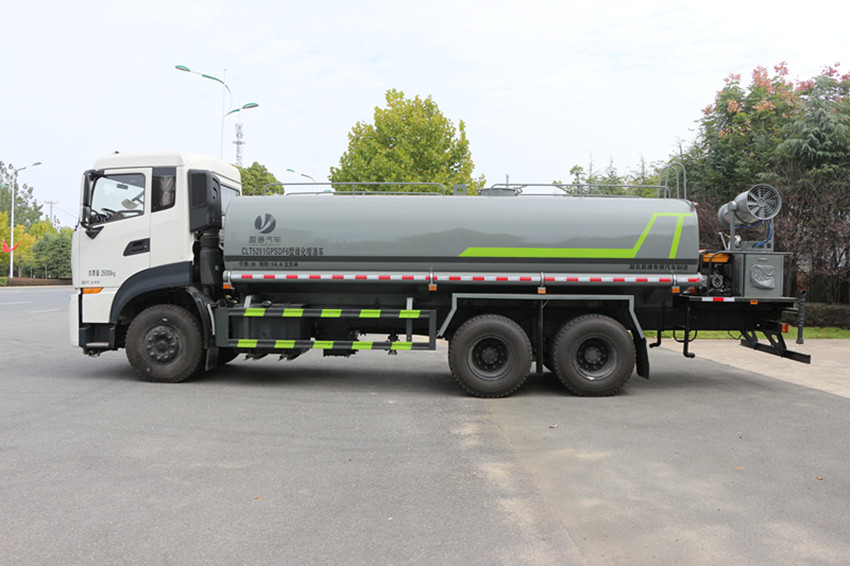 上安裝綠化灑水高炮,炮可噴灑農藥,并有多種雨狀可調節(大雨、中雨、毛毛雨、霧狀),配備大功率專用灑水泵,泵可自吸自排,帶自流閥,帶消防接頭,帶過濾裝置。其它嚴格按國家公告標準生產。 采用東風天龍后雙橋底盤,國六排放標準,康明斯290馬力柴油發動機,9檔變速箱,排半標準天龍駕駛室,295/80R22.5 18PR真空胎,4350+1350軸距,原裝空調,ABS,行車記錄儀。