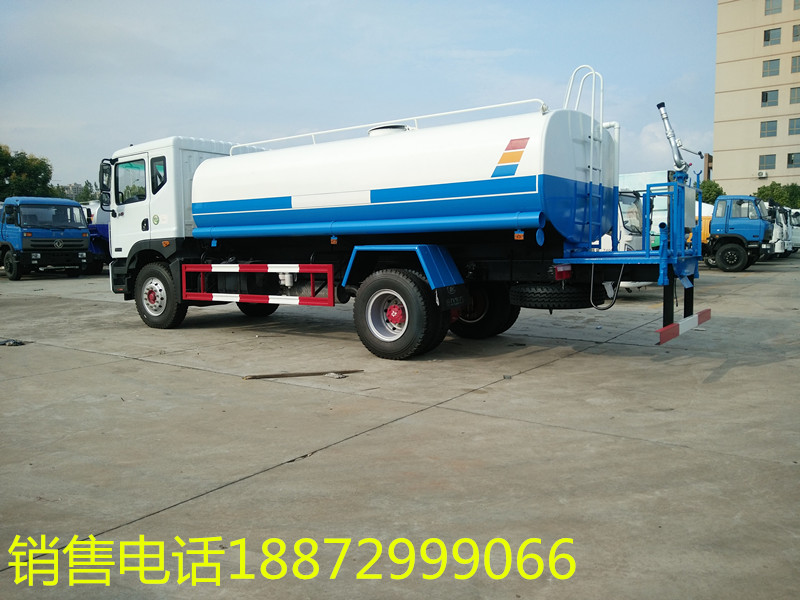 東風D9灑水車(12噸)罐體用4MM碳鋼板制作,罐內隔板具有防波作用,整車帶一個專用灑水泵(垂直最大吸程6米),灑水寬度14米,射程28,配備2個前沖、2個后灑、2個側噴、帶1個后工作平臺,平臺上安裝1個綠化灑水高炮(灑水炮可全方位旋轉,可連續(xù)調成直沖狀、大雨、小雨、毛毛雨,霧狀可調節(jié)沖洗高大樹木),引水時間<5min,流量90m3/h。帶1個消防接頭,帶1個自流閥,1個過濾裝置、人性化爬梯及側防護欄,安裝灑水音樂喇叭。