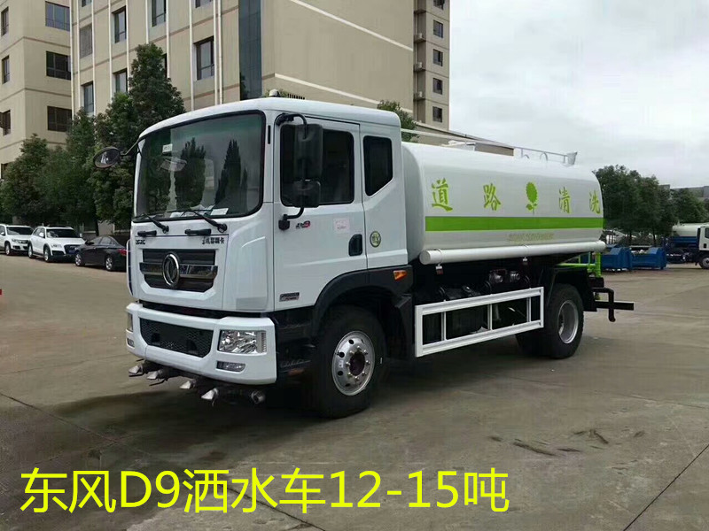 車輛型號東風D9灑水車12噸外形尺寸(mm)7700×2500×3200總質量(kg)15995額定載質量(kg)東風D9灑水車實際可裝水12噸底盤參數底盤型號EQ1165LJ9BDE軸數2軸距(mm)3950輪胎9.00R20發(fā)動機參數發(fā)動機型號YC4S160-50 ISB180 50發(fā)動機生產廣西玉柴機器股份有限公司 東風康明斯發(fā)動機有限公司排量(ml)3767 4500功率(kw)118 132上裝技術參數灑水裝置前沖,后灑,側噴,高配,后工作平臺。 射程寬度:≥16米高壓水炮柱狀、大雨、毛毛雨、霧狀等狀態(tài) 。射程距離:≥28米抽水裝置帶自吸自排裝置(可抽池塘,河溝,水井里的水) ,還帶消防接口。