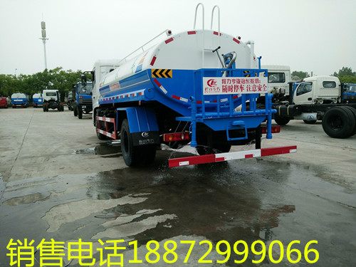 東風(fēng)12噸灑水車(chē)可選裝杭州威龍灑水泵、萬(wàn)向鴨嘴噴頭、駕駛室內(nèi)氣動(dòng)控制閥、罐尾LED箭頭指示燈,噴霧機(jī)(可噴灑農(nóng)藥)、罐尾噴霧裝置、罐內(nèi)防腐防銹等配置。