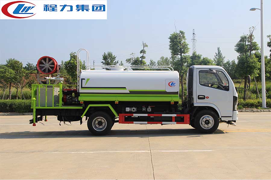 4、綠化炮功能:綠化高炮位于灑水車的后工作平臺,可全方位旋轉,并可調節多種噴灑、噴射方式(柱狀射程≥28m;霧狀射程≥15m)。綠化炮霧狀噴灑可用于園林綠化噴灑作業;綠化高炮噴射一般用于沖洗澆灌樹木;綠化炮沖洗一般用于護欄沖洗、高空建筑物沖洗等。