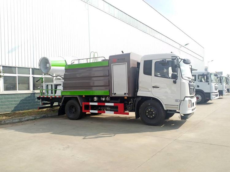 10方抑塵車上裝分為霧炮、機組、水罐罐體三大部分,依靠環保霧炮上高速運轉的風機風送原理,把罐體內的水經霧化風送到30-40米遠的射程,噴霧抑塵,凈化空氣,同時具備灑水和道路沖洗功能。該車在滿足使用的安全性、可靠性、方便性等性能指標的同時,造型美觀、時尚、新穎,風筒及構件全部采用噴砂處理后噴涂兩道底漆和一道面漆,漆料采用國內防腐漆。功轉換、射程遠、覆蓋面積大、霧粒細小且均勻、抑塵效果好。水霧與飄在空中的塵埃接觸時,被塵埃所吸附,加大塵埃的比重,抑制塵埃在空氣中的流動,并加速塵埃沉降,實現對空氣的凈化。