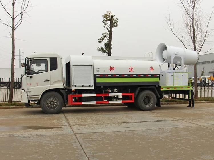東風天錦抑塵車罐體容積:10立方 ,風送式霧炮車射程:80米,罐體鋼板為4mm碳鋼Q235材質,罐體隔板具有防波作用,以減輕汽車在行駛過程中液體的沖擊。整車嚴格按照公告尺寸及外觀生產。抑塵灑水車帶大功率灑水泵,泵可自吸自排。