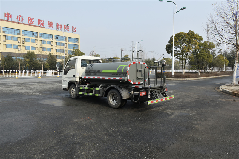 2噸灑水車罐體為橢圓形或方形,采用武鋼優質碳鋼板制成,罐體倉內1.5米一道隔板,具有防波防蕩作用,還可按用戶要求進行專業的防腐防銹處理,罐體外可用發泡或巖棉加裝保溫層起保溫功能。可選裝藥盤,藥泵、高壓噴藥設備、非車帶泵動力等.、罐內防腐防銹、多方位進出水接頭、氣動閥、警燈等先進設施,以滿足不同用戶需求。