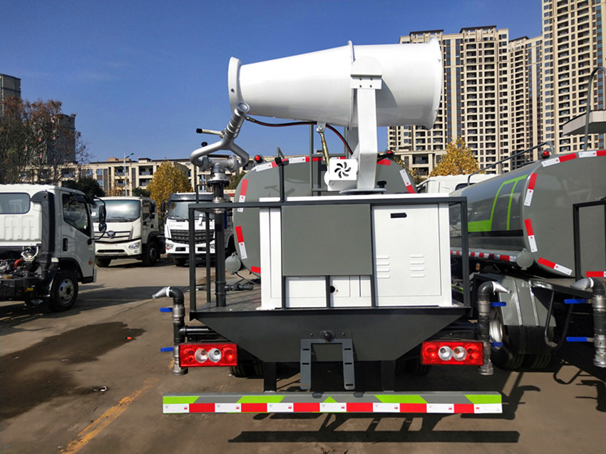抑塵車配備大功率專用灑水泵,泵可自吸自排,安裝過濾網,帶消防接口,可通過消防栓進水,帶自流閥,隨車選裝20米綠化卷盤,可噴灑農藥,罐體金屬漆。罐體有橢圓和方圓罐兩種,可根據用戶的要求定做
