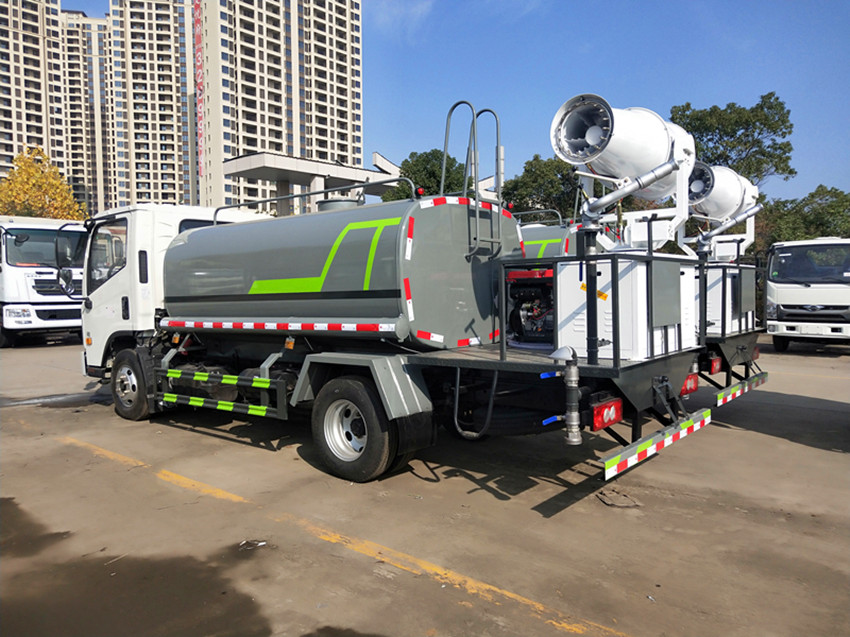 抑塵車配備大功率專用灑水泵,泵可自吸自排,安裝過濾網,帶消防接口,可通過消防栓進水,帶自流閥,隨車選裝20米綠化卷盤,可噴灑農藥,罐體金屬漆。罐體有橢圓和方圓罐兩種,可根據用戶的要求定做