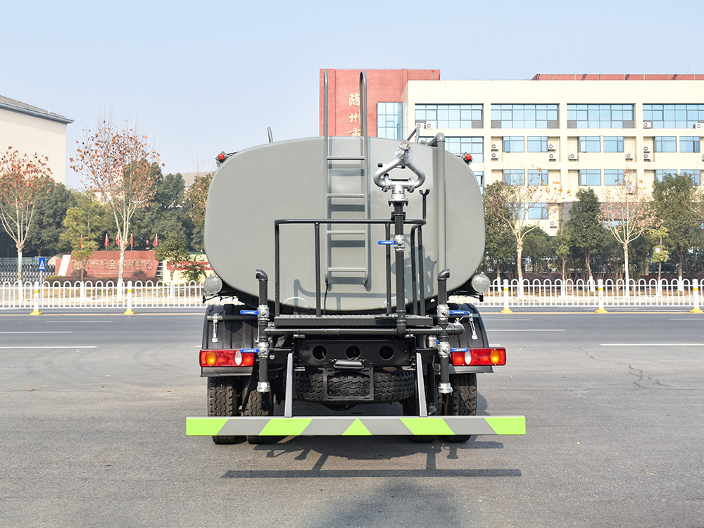 東風天錦 12 噸灑水車產品標配前噴(鴨嘴)、后沖、后灑、側噴、后置式工作 平臺,平臺上配置綠化水炮(可 360°旋轉,既可以調成柱狀,也可 以調成霧狀,更可以調成直沖狀、大雨、中雨、小雨、毛毛雨),配 備優質大功率專用灑水泵(可自吸自排,可從河里或池塘抽水到罐體), 取力器,雜物過濾網,消防接口,自流球閥系統、取力器、球閥、濾網 均為國家標準產品,主管道加粗,法蘭墊、法蘭盤加厚,大通徑球閥。 整體具備性能優良安全可靠、效率高、流量大、維修方便等特點。