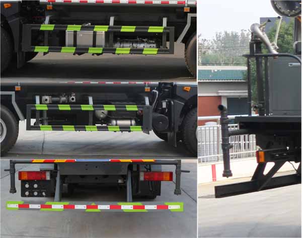 該車主要用于城鄉園林綠化噴灑;主要裝置為水罐及噴霧裝置;隨底盤選裝駕駛室,選裝噴霧裝置樣式,選裝罐體后部弧形高壓噴頭及箭頭指示燈;罐體總容量:14.81立方米;罐體有效容積:14.11立方米,罐體外形尺寸(長×長軸×短軸)(mm):6800×2390×1620,6800×2400×1450;側、后防護材料均為:Q235碳鋼,連接方式均為:螺栓連接,后部防護截面尺寸(mm):120×50,后部防護離地高度(mm):480;ABS型號及生產廠家為:3631010-C2000/東科克諾爾商用車制動系統(十堰)有限公司,J ABS/焦作博瑞克控制技術有限公司.僅采用底盤4350+1350軸距(mm)改裝。選裝擋泥板樣式,隨底盤選裝副水箱及支架、空濾尿素罐、電瓶框等位置布局。選裝后部樣式,選裝水炮支架位置,選裝高位花灑管道樣式,選裝弧形噴灑裝置,選裝箭頭燈裝置。選裝自動球閥安裝位置。
