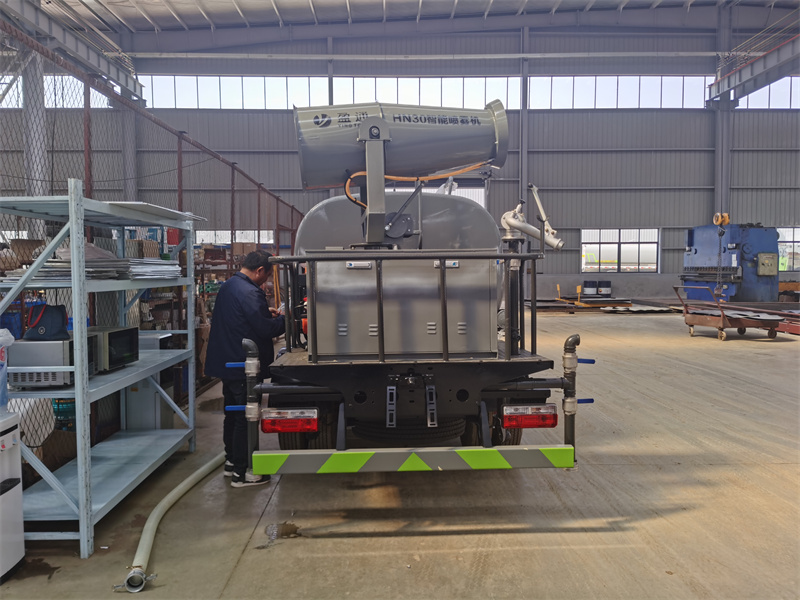 東風(fēng)藍(lán)牌灑水車(chē)配置:采用東風(fēng)灑水車(chē)原廠底盤(pán),罐體有效容積5立方,藍(lán)牌,700R16鋼絲胎,萬(wàn)里揚(yáng)5擋變速箱,原廠空調(diào),ABS,氣動(dòng)剎車(chē),多功能方向盤(pán),配全柴115匹馬力國(guó)六發(fā)動(dòng)機(jī),配30型號(hào)霧炮,配8千瓦發(fā)電機(jī)組,霧炮可以遙控操作