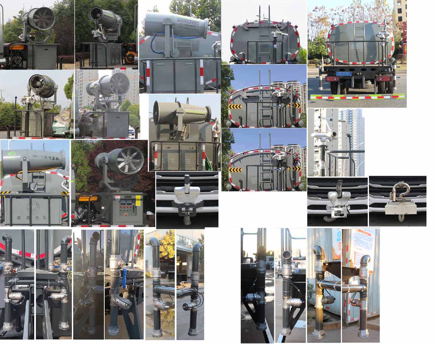該車主要用于城鄉園林綠化,路面噴灑,除塵和降溫;主要裝置為水罐及噴灑裝置;隨底盤選裝駕駛室;罐體總容量:7.58立方米;罐體有效容積:7.22立方米;罐體外形尺寸(長×長軸×短軸)(mm):4200×2000×1310,4000×2000×1320;ABS型號/廠家:ABS型號及生產廠家為:3631010-C2000/東科克諾爾商用車制動系統(十堰)有限公司,J ABS/焦作博瑞克控制技術有限公司;側、后防護材料均為:Q235碳鋼,連接方式均為:螺栓連接,后部防護截面尺寸(mm):120×50,后部防護離地高度(mm):450.選裝噴灑裝置樣式,選裝后部箭頭燈,選裝后部弧形噴灑裝置,選裝水炮支架位置,選裝后部樣式,選裝自動球閥安裝位置,選裝自動炮裝置樣式,前伸500mm,整車長度為7700(mm).選裝罐體頂部高位花灑裝置及方形罐口,選裝工具箱裝置.后部作業燈僅在作業時開啟,車輛行駛過程中不可開啟.