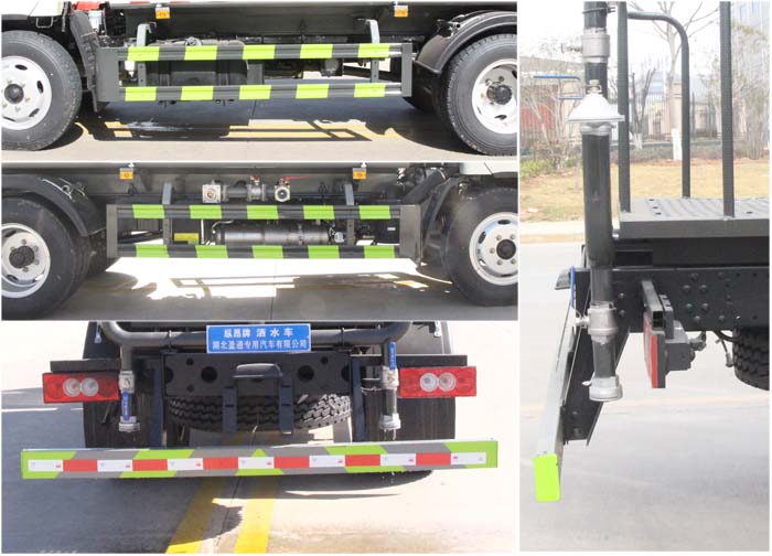 備注 | 該車主要用于城鄉園林綠化,路面噴灑,除塵和降溫;主要裝置為罐體及噴灑裝置;罐體總容量7.56立方米,罐體有效容積:7.2立方米,罐體尺寸為(長×長軸×短軸)(mm):4200×2000×1310;ABS系統型號:ABS-VI.E;生產企業:廣州瑞立科密汽車電子股份有限公司.ABS系統型號:ABS-E;生產企業:威伯科汽車控制系統(中國)有限公司;側、后防護材料均為:Q235碳鋼,連接方式均為:螺栓連接,后部防護截面尺寸(mm):120×50,后部防護離地高度(mm):450.隨底盤選裝駕駛室;采用3800mm軸距.選裝前部電子炮樣式,選裝噴灑裝置樣式,選裝前部鴨嘴噴灑樣式,選裝罐體頂部高位花灑裝置,選裝氣動球閥安裝位置.選裝油箱電瓶安裝位置.選裝前部不帶電子霧炮.當前部不帶電子霧炮時,車輛長度7200mm,無前伸;當前部選裝電子霧炮時,車輛長度7700mm,前伸500mm.選裝箭頭燈裝置,后部作業燈僅在作業時開啟,車輛行駛過程中不可開啟. | ||