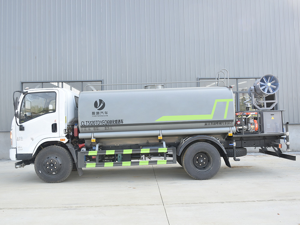 東風(fēng)10方抑塵灑水車配置: 發(fā)動(dòng)機(jī)云內(nèi) 150 馬力(四缸),萬里揚(yáng) 6 檔變速箱,前橋 2.2 噸, 后橋 4.2 噸,8.25 鋼絲胎,軸距 3800,斷氣剎,ABS,空調(diào),電動(dòng)玻璃, 中控鎖。2.上裝配置: 1、罐體約為 10 方,可加裝 30 型霧炮 2、邊燈帶電,罐體尾部上方標(biāo)配 2 個(gè)紅色示寬燈, 3、標(biāo)配前噴為鴨嘴直沖,標(biāo)配后沖,用戶可根據(jù)自己的需求,來調(diào) 整對沖位置。 4、花紋防滑平臺,炮筒后蓋為定制型螺栓卡扣, 5、前噴、后沖、后灑、側(cè)噴,綠化高炮開關(guān)球閥均采用 50 大通經(jīng) 不銹鋼球閥, 6、新式軸承式水炮,更加耐用, 7、40-50 型水泵, 8、防腐法蘭墊片, 9、鋁制后灑,不易炸開 10、罐體自動(dòng)焊(美國林肯焊機(jī)及電源),拼板自動(dòng)焊接,封頭環(huán) 縫焊接,無氣孔,焊縫美觀。 11、側(cè)護(hù)網(wǎng)、后保險(xiǎn)杠、均為螺栓連接,方便拆卸,維修方便。 12、塑料擋泥板,替代鐵擋泥板,更加輕便,用螺栓連接,方便拆 卸。 13、前部、后部主管連接處為 6 孔圓法蘭,不易沖墊