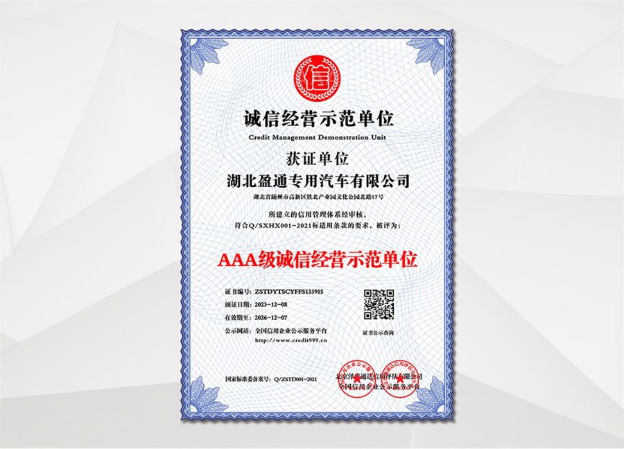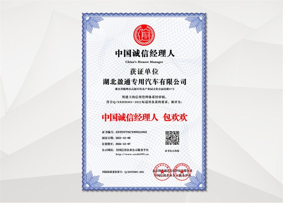 湖北盈通專用汽車有限公司技術力量雄厚,檢測手段完備,擁有國內外先進的生產的設備,產品質量穩定,經營方式靈活,我們的服務宗旨是:以質量求生存、信譽是保證。誠信待人,靈活經營、高質低價,講究效率。