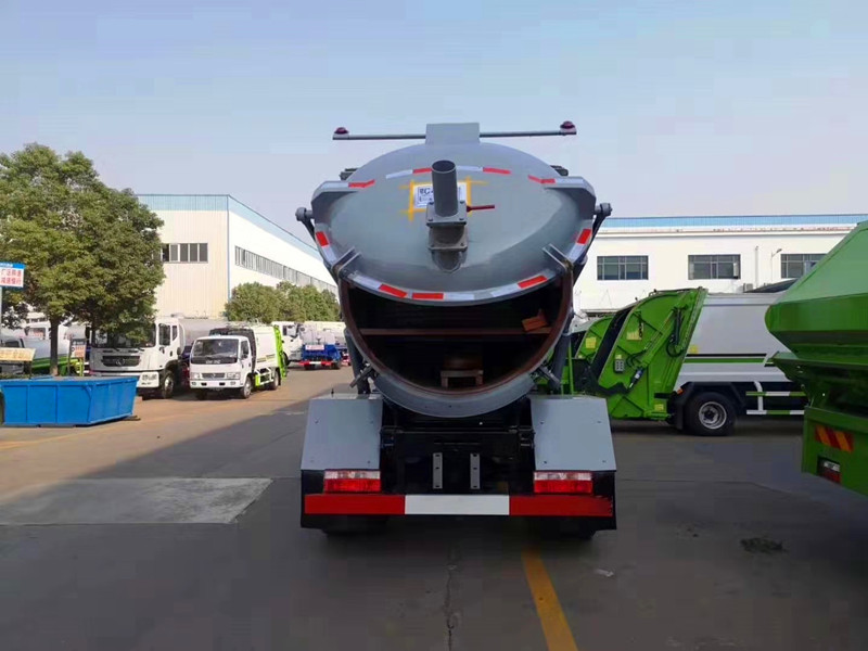 介質(zhì):餐廚垃圾,密度:800千克/立方米,罐體有效容積:8.13立方米,罐體外形尺寸(直段長×直徑)(mm):3800×1600。該車右側(cè)面配備垃圾上料裝置,用于作收集餐廚垃圾。防護(hù)材料:Q235A碳鋼,連接方式:左右側(cè)面及后下部防護(hù)均采用焊接連接,后部防護(hù)斷面尺寸(mm):120×50,后部防護(hù)離地高度(mm):400。 ABS系統(tǒng)型ABS/ASR-24V-4S/4M,ABS系統(tǒng)生產(chǎn)廠家襄陽東風(fēng)隆誠機(jī)械有限責(zé)任公司。此整車長/軸距對應(yīng)關(guān)系為(mm):6850/3800,7000/3950,7100/4050,7150/4100,7450/4400。當(dāng)軸距為(3800mm,3950mm)時,整備質(zhì)量為5600kg,當(dāng)軸距為(4050mm,4100mm,4400mm)時,整備質(zhì)量為6400kg。隨底盤選裝駕駛室。