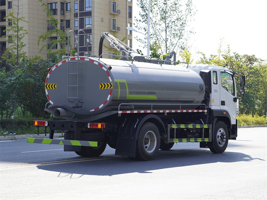主要專用裝置:罐體及吸糞裝置總成,主要用于抽排運污水、糞便、泥漿等液態污物;罐體總容量:12.34立方米;罐體有效容積:11.73立方米;罐體外形尺寸(長×長軸×短軸)(mm):5200×2350×1500,4400×2350×1600;側、后防護材料均為:Q235碳鋼,連接方式均為:螺栓連接,后部防護截面尺寸(mm):120×50,后部防護離地高度(mm):470;ABS系統型號:ABS-VI.E;生產企業:廣州瑞立科密汽車電子股份有限公司.ABS系統型號:ABS-E;生產企業:威伯科汽車控制系統(中國)有限公司,ABS系統型號:3550D-1010;生產企業:東科克諾爾商用車制動系統(十堰)有限公司.采用4500,3950mm軸距.選裝側部及后部出口樣式;隨底盤選裝限速裝置,限速90km/h.隨底盤選裝駕駛室,選裝尿素罐位置,選裝電瓶位置.選裝罐體頂部防溢閥裝置樣式.