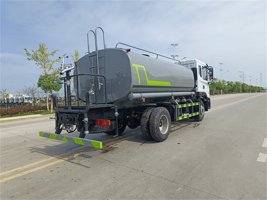 東風灑水車產品配置 1.底盤配置: 東風華神 T5 駕駛室,玉柴 170 馬力,法士特 8 檔,9.00 鋼絲胎,3950 軸距,前橋 2.7T/后橋 8T,中控鎖,電動玻璃,多功能方向盤,原廠空調, 氣囊座椅 2.上裝配置: 1、罐體約為 12 方, 2、邊燈帶電,罐體尾部上方標配 2 個紅色示寬燈, 3、標配前噴為鴨嘴直沖,標配后沖。 4、沖孔平臺(承載能力加強),炮筒后蓋為定制型螺栓卡扣, 5、全車球閥均采用 50 大通徑不銹鋼球閥, 6、新式軸承式水炮,更加耐用, 7、60-90 型水泵, 8、防腐法蘭墊片, 9、鋁制后灑不易炸開 10、罐體自動焊(美國林肯焊機及電源),拼板自動焊接,封頭環縫焊 接,無氣孔,焊縫美觀。 11、側護網、后保險杠、均為螺栓連接,方便拆卸,維修方便。 12、塑料擋泥板,替代鐵擋泥板,更加輕便,用螺栓連接,方便拆卸。 13、前部、后部主管連接處為 6 孔圓法蘭,不易沖墊