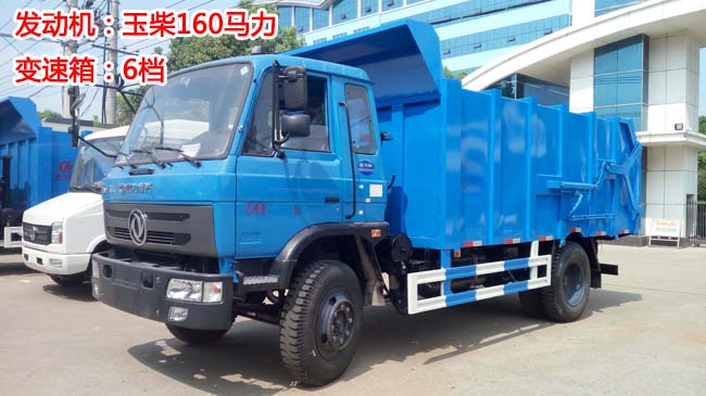 東風145對接式垃圾車,老款145駕駛室,玉柴160/康明斯170馬力發動機,6檔/小八檔變速箱,軸距3.95/4.5米,輪胎9.00R20鋼絲胎,帶有ABS、下防護、方向助力。