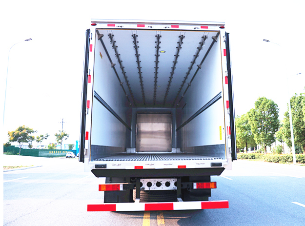 東風(fēng)天龍9米6冷藏車廂體配置為:斷橋隔溫工藝,整體結(jié)構(gòu)框架,內(nèi)外面料為3mm新款啞光玻璃鋼夾保溫層真空復(fù)合而成,廂體厚度為8cm,最新款鋁合金包邊型材,型材局部厚度為4mm(鋼制鉚釘加固),廂體內(nèi)部采用2個(gè)LED照明燈及廂體示寬燈,后門框不銹鋼材質(zhì),門框密封條為三元乙丙橡膠材質(zhì),加厚型不銹鋼合頁(yè)及鎖件;副梁為Q700車用大梁鋼,15mm厚大梁墊皮,加裝防撞膠塊,不銹鋼門鎖件,配后雙開(kāi)門,副駕駛一側(cè)居中靠前開(kāi)單側(cè)門一個(gè),帶2個(gè)排水孔。