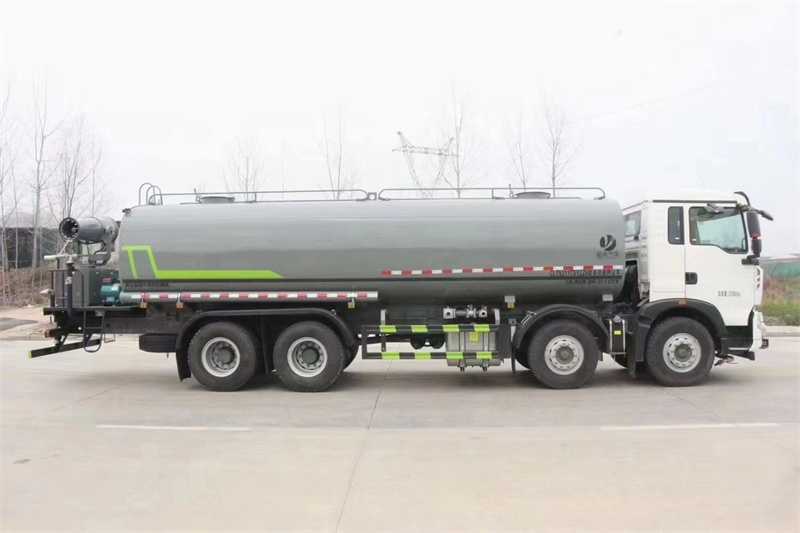 重汽豪沃28噸霧炮灑水車產品配置 底盤采用重汽豪沃TX專用底盤,豪沃TX駕駛室采用德國曼TGA駕駛室 本體改進而成,不僅美觀大方,且舒適實用;德國曼350馬力發動機 , 德國技術動力強勁且油耗低;軸距1850+3800+1350,輪胎11.00R 鋼絲胎,豪沃9檔帶同步器變速箱,掛檔輕便;德國曼7.5噸雙前橋 和11噸雙后橋, 自重輕,承載強