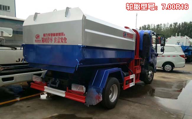 容積5~6立方米,箱體全密封,采用Q235優質碳鋼焊接,邊板折彎強化,箱體右側配液壓掛桶提升機,可掛國標120升+240升塑料垃圾桶,提升速度快,穩定性高,尾門彈簧鎖扣帶橡膠密封條,箱內設污水欄,箱體雙缸液壓自卸,多路閥手柄操控。