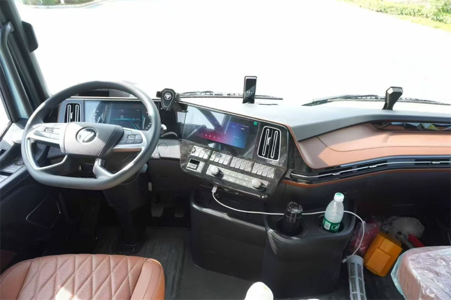 歐曼銀河3平地板駕駛室,旋鈕式變速箱,手動天窗,電動翻轉,有感應雨刮,凝夜藍金屬漆,7寸液晶組合儀表+MP5,10寸大屏+四方位影像,275/80R22.5 18PR-全鋼車輪輪胎,600L鋁油箱,9t(368)后橋,速比:3.7(自調臂ABS),135Ah鉛酸電池+無電壓轉換器,