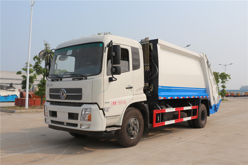 新款平面弧形廂體,廂體材料為武鋼優(yōu)質(zhì)碳鋼,外箱尺寸:8840×2550×3200mm,有效壓縮容積10-12立方,PLC一鍵操作控制,手電一體操作模式,兩側(cè)雙電控,帶駕駛室內(nèi)操作,底板支撐加強(qiáng),雙向壓縮,開放式易清潔污水箱。壓縮式垃圾車采用機(jī)電液一體化技術(shù),借助機(jī)、電、液聯(lián)合自動(dòng)控制系統(tǒng)、電腦控制、手動(dòng)操作系統(tǒng),通過填裝器和推鏟等專用裝置,實(shí)現(xiàn)垃圾倒入、壓碎或壓扁、強(qiáng)力裝填,把垃圾擠入車廂并壓實(shí)和推卸,污水全部進(jìn)入污水收集箱,解決了垃圾運(yùn)輸過程中的二次污染的問題。壓縮式垃圾車具有自動(dòng)反復(fù)壓縮以及蠕動(dòng)壓縮功能,壓縮比高、密封性好、裝載量大﹑操作方便、環(huán)保性好﹑整車?yán)霉β矢叩葍?yōu)點(diǎn)。
