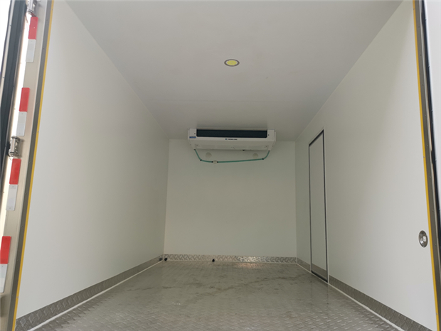 國六寬體江鈴凱運4米2冷藏車廂體配置為:采用斷橋隔熱工藝,整體框架結構制作,廂體內、外壁材料為玻璃鋼板,采用高密度保溫層,廂板內帶有骨架,廂體厚度80mm,門框,門飾件、包角全部使用不銹鋼材質。最新款鋁合金包邊型材,廂體內采用LED照明燈及廂體示寬燈;門框密封條為橡膠材質,后門梁帶加厚防撞塊,加厚型不銹鋼鉸鏈及鎖件。車體副梁采用510L高強度鋼制作,底板為鋁花紋板,車廂后門帶一個上車扶手,其余標配;