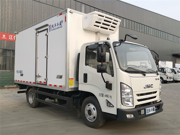 國六江鈴凱運4米2冷藏車基本參數:整車外形尺寸:5995×2270×3190mm,車廂凈空尺寸為:3990×2100×2100mm,車廂容積約為17.6立方,總質量為:4495Kg,整備質量為:3200Kg,額定質量為:1100Kg.車輛符合上藍牌的標準,可進市區,C證可開。國六江鈴柴油發動機,2.8L排量,123馬力發動機,5檔變速箱,整車型號為:JX5043XLCTG26。