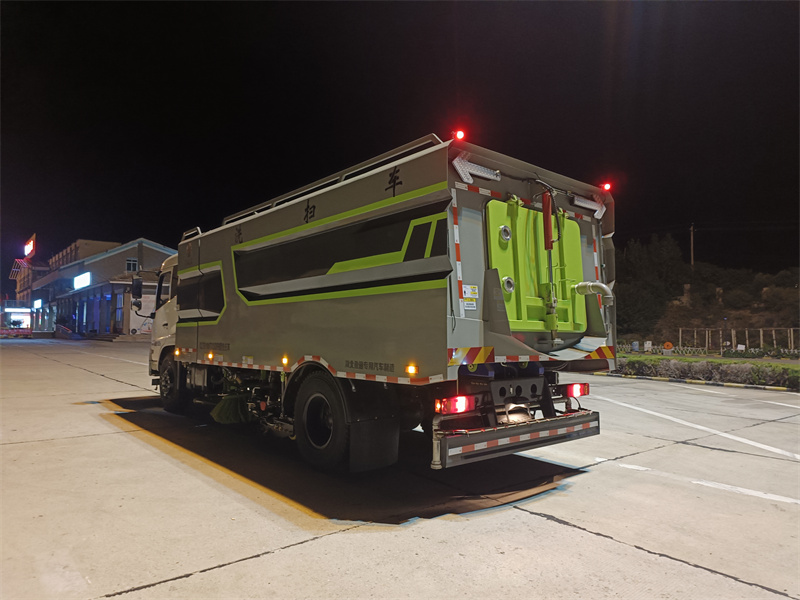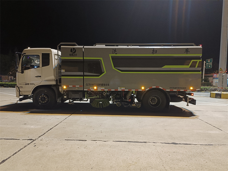 東風18噸清掃車產品簡述 洗掃車具有路面清洗,路面清掃路緣和路緣石立面洗刷、低壓沖洗、噴霧 除塵等多功能。 有“全洗掃”、“左洗掃”、“右洗掃”、“全掃”、多種作 業模式可選擇。選擇“全洗掃”模式清洗 廣場和路面,清晰效率高效果好,洗 凈率達 95%以上。選擇“左洗掃”或“右洗掃”模式清洗 路面和路緣。需要進 行路面清掃或路面保潔作業時,可選擇掃路模式。需要噴霧除塵時,可開 啟% 節磨,進行噴霧除塵作業。可以像灑水車一喂普面進行低壓沖洗作業。 洗掃車適用于城市道路、高速公路、廣場、機場、碼頭、隧道、橋梁、合 理墻壁、路緣和 路緣石立面的機械清洗、清掃、噴霧除塵等清潔作業