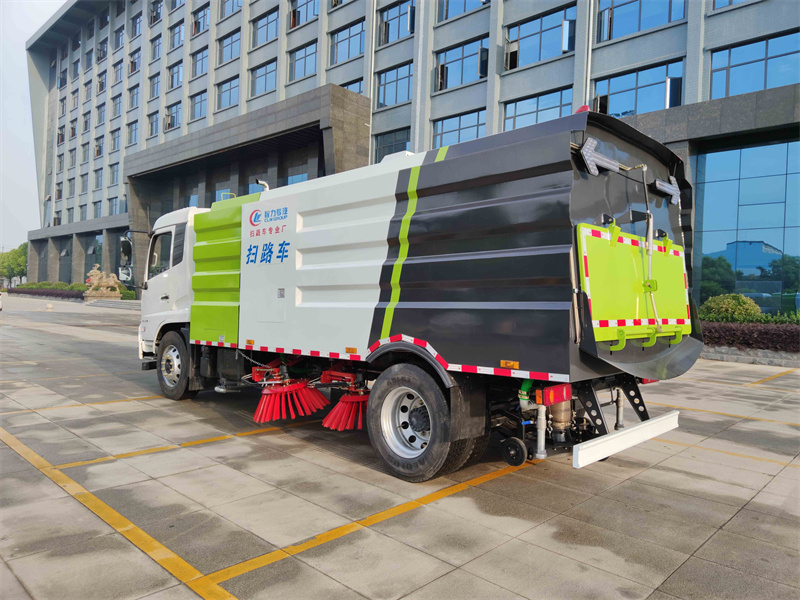 1、清掃車采用吸掃結合的方式收集垃圾,濕式除塵、電液控制,液壓傾翻卸料的作業方式對路面進行清掃作業。