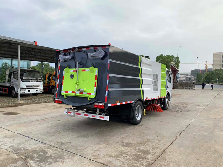 此車為道路洗掃專用車輛,專用裝置為掃刷.防護材料:Q235A碳鋼,連接方式:左右側面防護為掃刷,