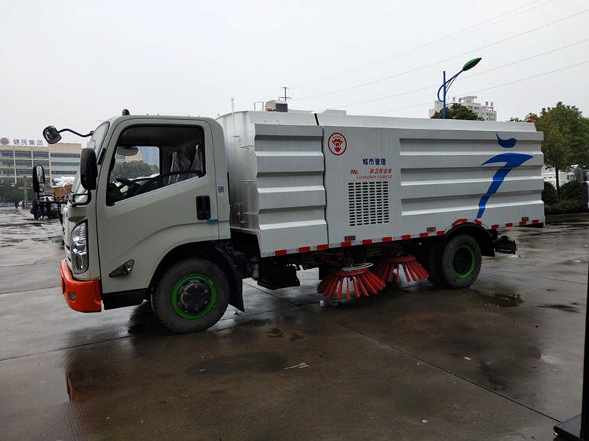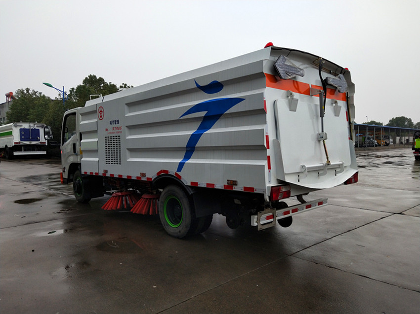 1、掃路車采用吸掃結合的方式收集垃圾,濕式除塵、電液控制,液壓傾翻卸料的作業(yè)方式對路面進行清掃作業(yè)。